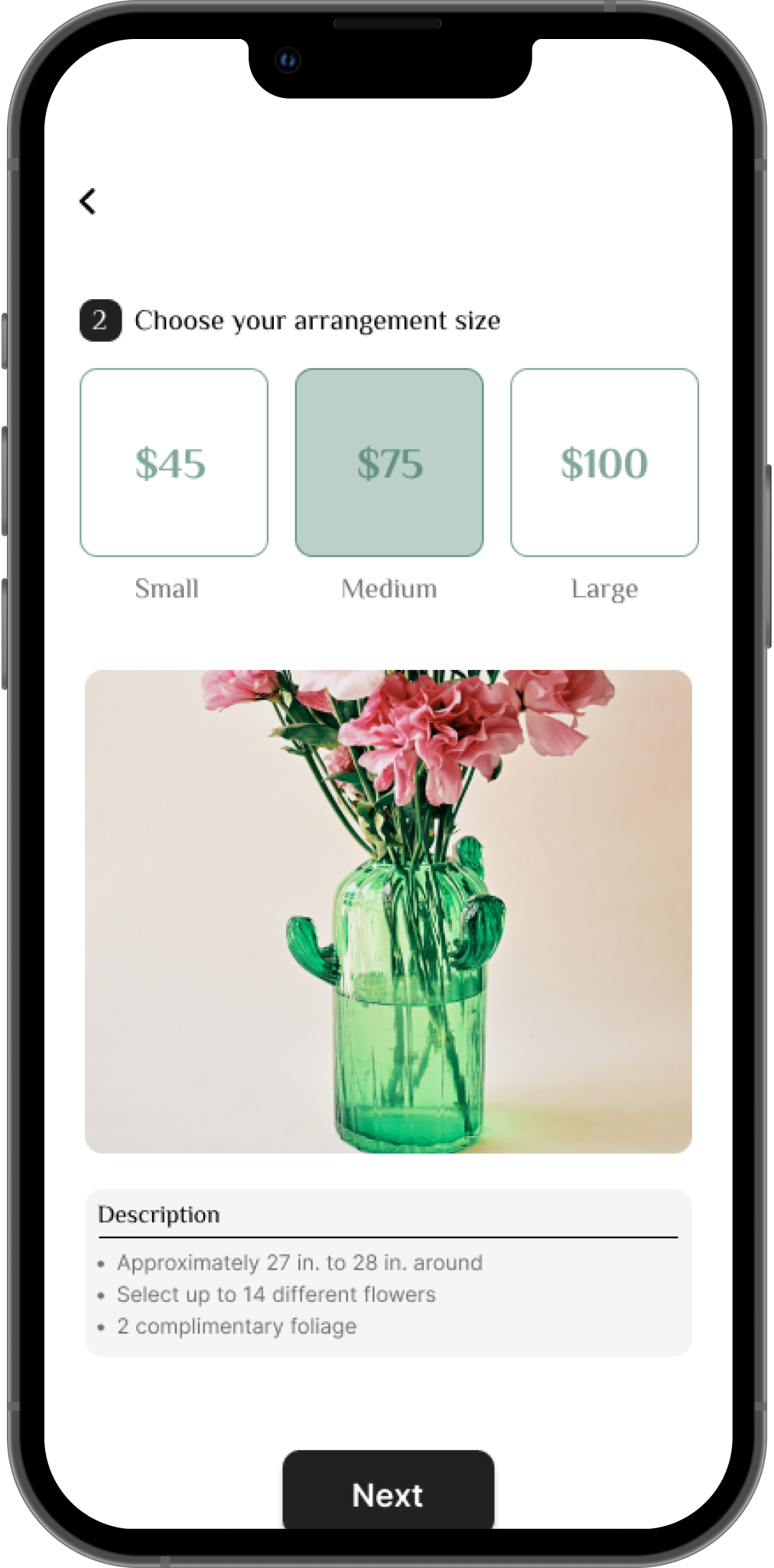 CUSTOM ARRANGEMENT - I added a custom arrangement feature for users to build their own flower arrangements to ensure that they could get exactly what they wanted for their specific occasion.